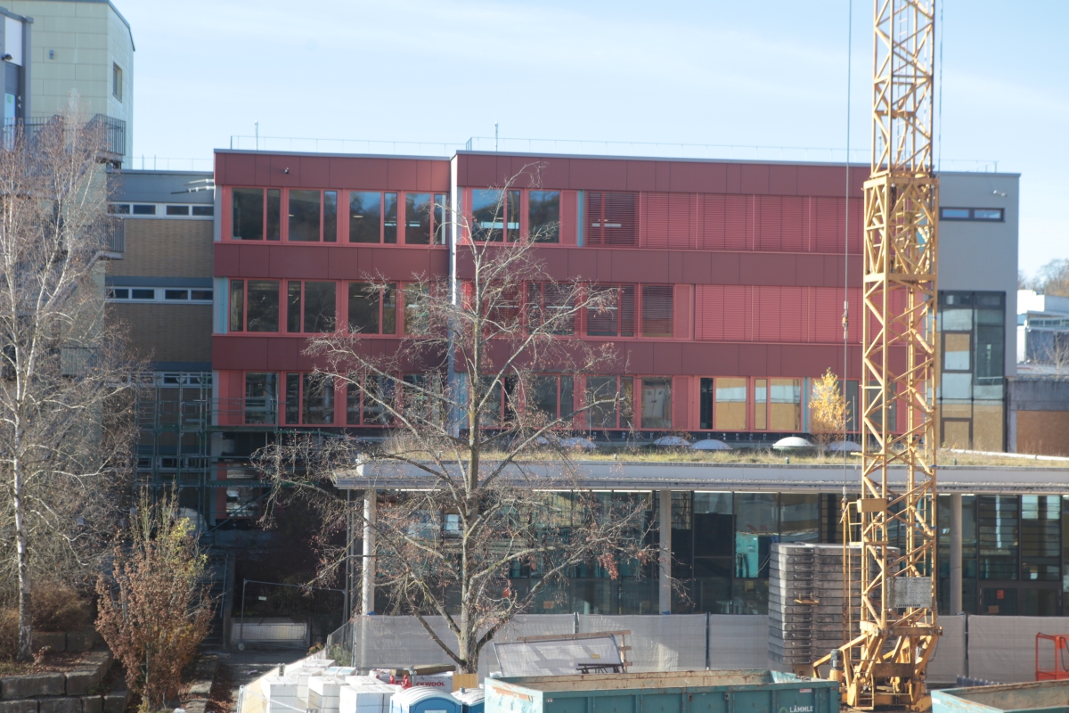 Als erster Bauabschnitt wurde der G-Bau (zwischen PG und WG) fertiggestellt. Direkt nach den Pfingstferien konnten die Musiker ihn beziehen und erfreuen sich seither an den neuen Räumlichkeiten.
