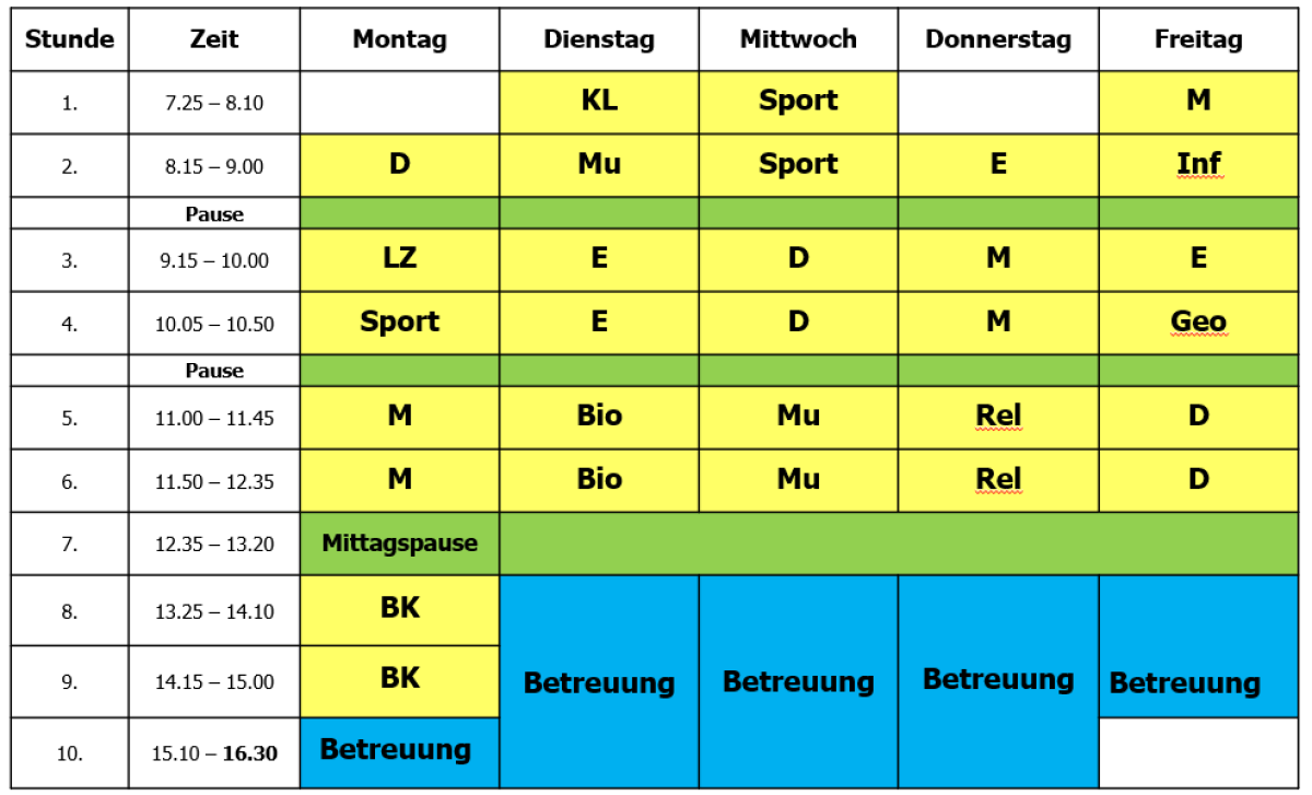 Musterstundeplan Klasse 5