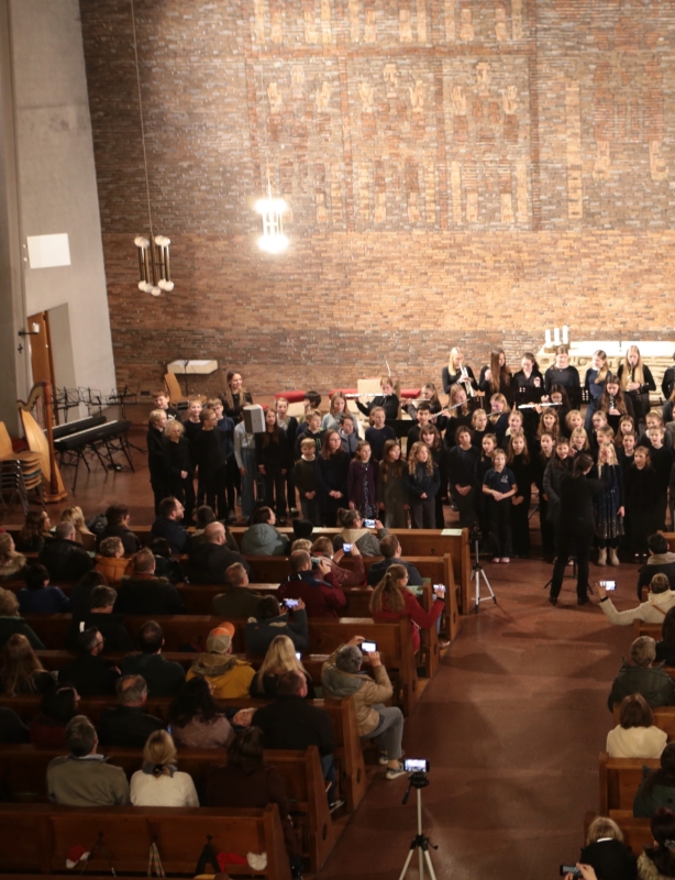 Unter dem bereits aufgerichteten Weihnachtsbaum in St. Josef gaben am Vorabend des letzten Schultags die Musik-Arbeitsgemeinschaften ihr Adventskonzert. Dieses war dieses Jahr auf diesen späteren Termin gelegt worden, wodurch das Konzert eine ganz besondere vorweihnachtliche Note erhielt.
