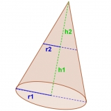 Der Durchmesser der Grundfläche eines Kegels beträgt d=18 cm. Der Kegel soll nun durch einen zur Grundfläche parallelen Schnitt unterteilt werden. Die Schnittfläche hat dabei den Durchmesser 12 cm. Der untere Teil (Kegelstumpf) hat dann eine Höhe von 10 cm.Wie hoch ist dann der obere Teilkegel?