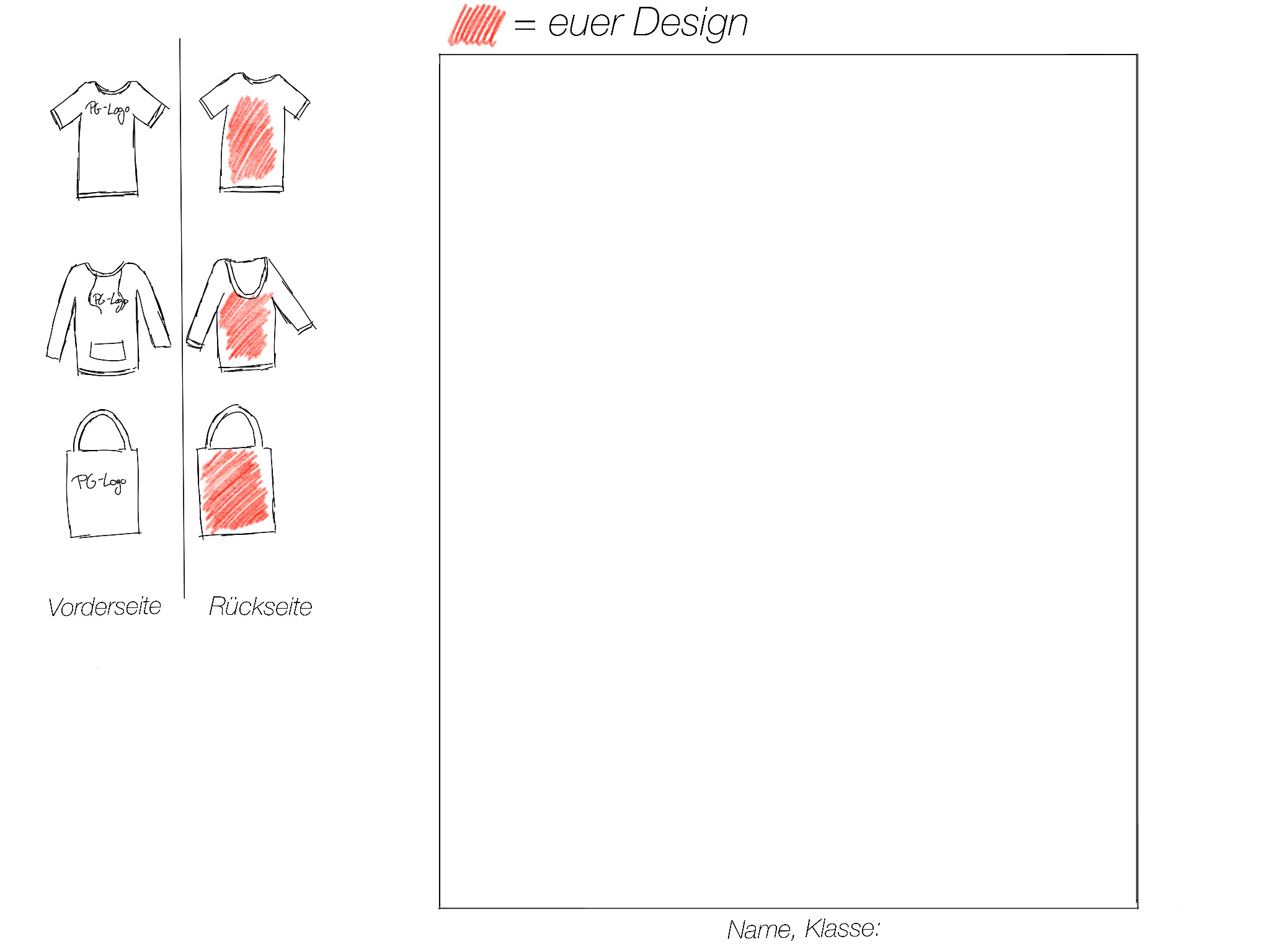 Auf der Vorderseite der T-shirts, Hoodies und der Taschen wird das PG-Logo gedruckt (unveränderlich), eure Aufgabe ist es, die Rückseite zu gestalten. Euer Motiv sollte das PG repräsentieren.