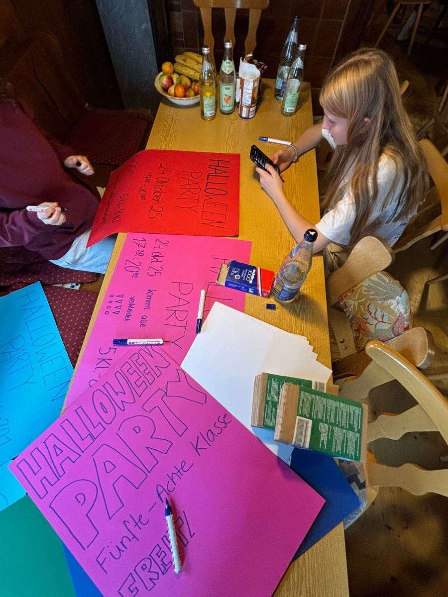 Am Mittwoch nach der Schule ging es los: Um 13 Uhr fuhren wir mit dem Bus nach Immenstadt. Dort angekommen wanderten wir gemeinsam zur Hütte. Nach dem Beziehen der Zimmer gab es eine kleine Stärkung mit Kaffee, Tee und selbstgebackenen Kuchen. Danach setzen wir uns zusammen, um einige Ideen und Verbesserungsvorschläge in Form des „Ideentopfs“ zu sammeln. Zum Abendessen gab es Wraps und der Tag endete mit einigen Runden „Werwolf“, bei denen viel gelacht und gemeinsam gespielt wurde.