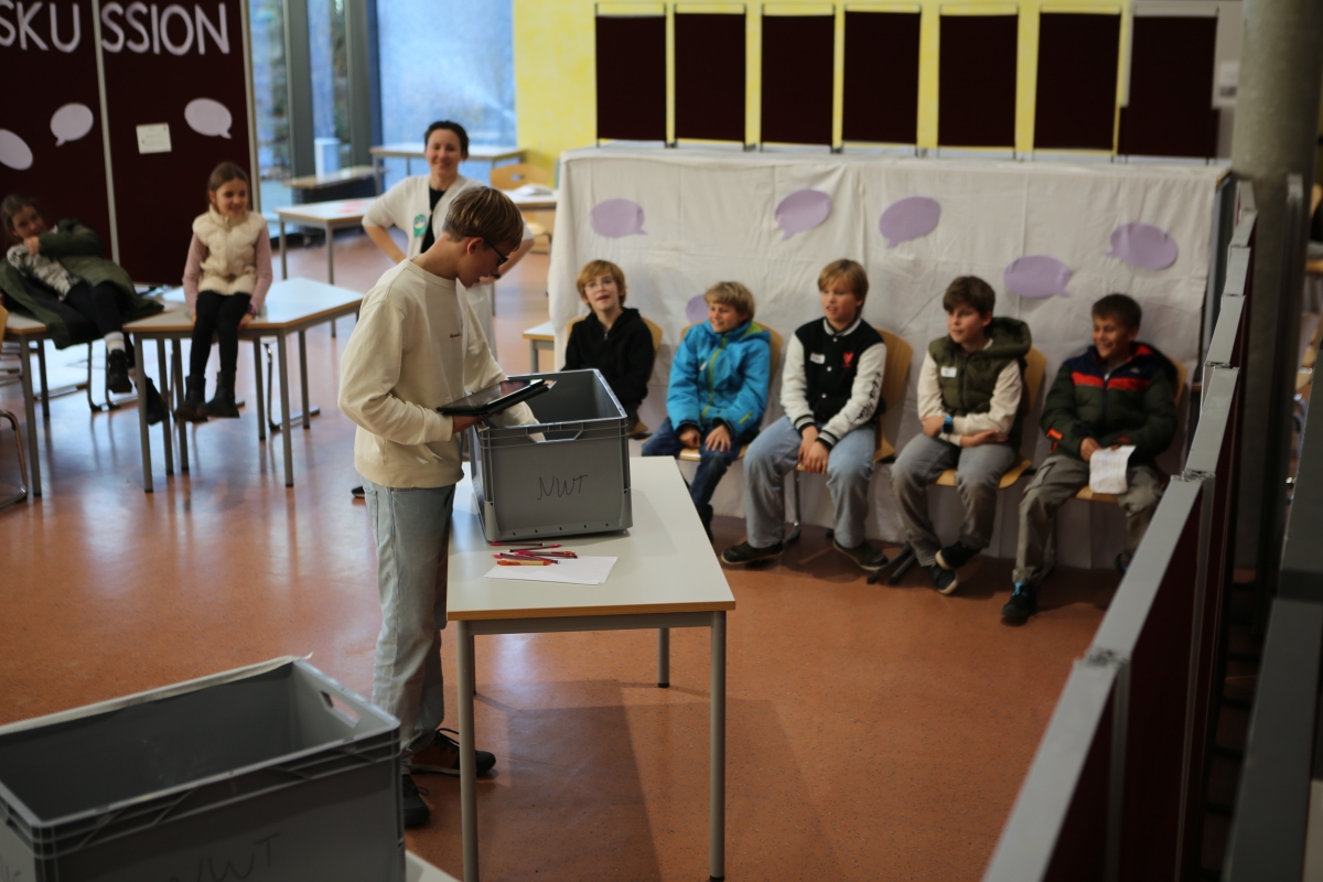 Sehr unterschiedliche Sessions wurden von Lehrerinnen und Lehrern und sehr vielen Schülerinnen und Schülern angeboten: So gab es unter den sportlichen Angeboten z. B. eine Einführung in Karate, Völkerball oder Bogenschießen. Viele Sessions befassten sich auch mit Lernstrategien oder schulinternen Themen. Natürlich war auch das implizite Leitmotiv „Demokratie“ Inhalt solcher Angebote wie der Umgang mit Fake News oder „bad news“. Das am PG neu implementierte Beteiligungskonzept aula („Ausdiskutieren und live abstimmen“), das die innerschulische Demokratie niederschwellig stärken soll, war selbstredend auch Inhalt mehrerer Angebote. Der diesjährige pädagogische Tag am PG war nach Meinung vieler Schülerinnen und Schüler ein voller Erfolg – nicht zuletzt auch, weil das Duzen obligatorisch war!