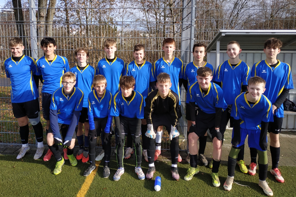 Trotz eisigen Temperaturen und einem dichten Schneegestöber gelang ein überzeugender 2:0 Sieg im ersten Gruppenspiel gegen die Realschule Riedlingen. In der zweiten Partie gegen die leicht favorisierte Realschule Laupheim behielt die Mannschaft auch nach einem Rückstand die Nerven und erkämpfte noch ein beachtliches 1:1. Im Halbfinale ging es nun gegen den Rekordsieger der vergangenen Jahre, das Carl-Lämmle-Gymnasium Laupheim. Gegen die mit vielen hochklassigen Vereinsspielern bestückte Team hielt das PG sehr gut mit, erarbeitete sich Chancen, musste dann aber einen äußerst zweifelhaften Elfmeter gegen sich hinnehmen. Ein weiterer Treffer des späteren Turniersiegers besiegelte dann leider die 2:0 Niederlage.